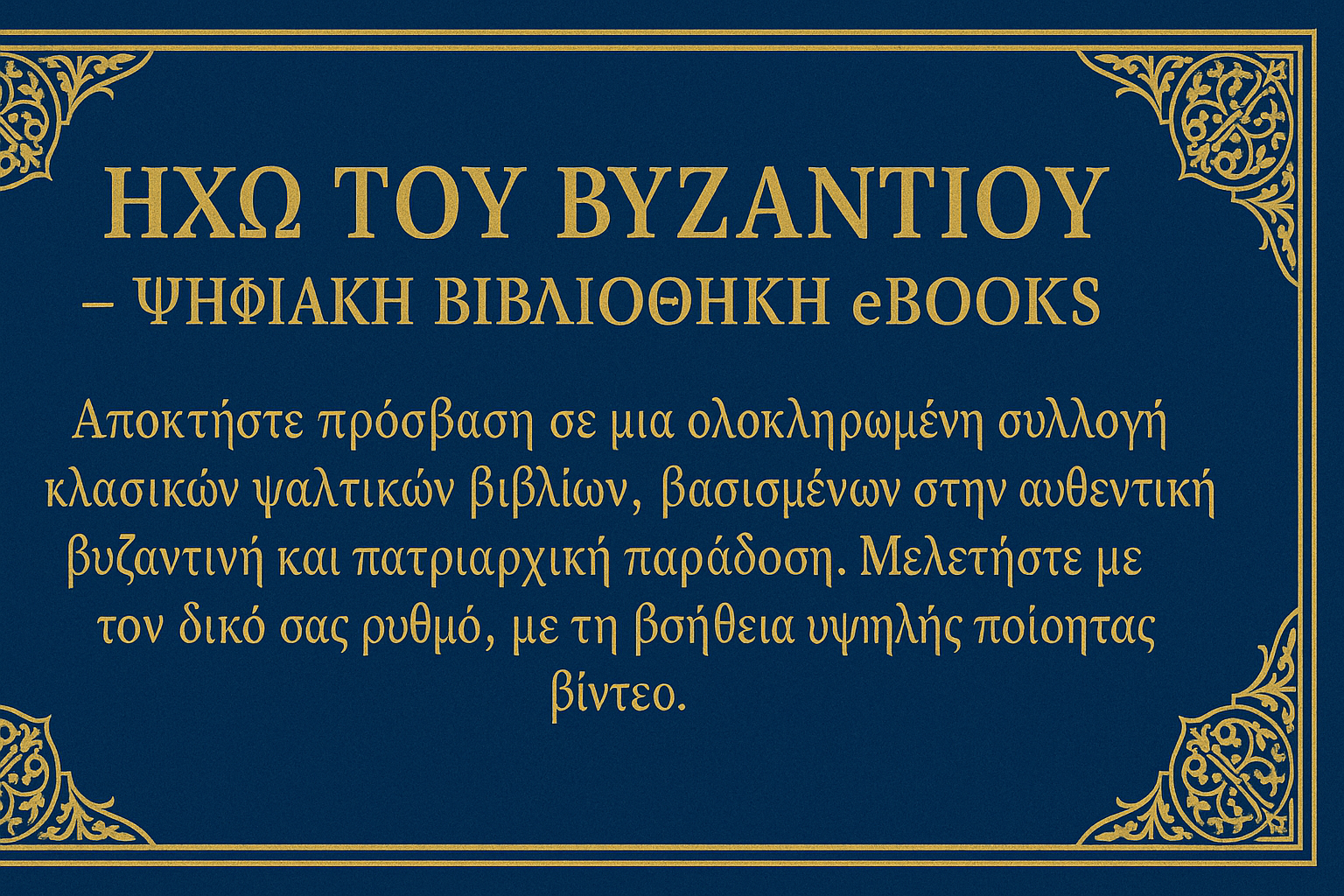 Αν θέλετε να μελετήσετε πραγματικά την αυθεντική ψαλτική παράδοση, αλλά δυσκολεύεστε να βρείτε οργανωμένο υλικό, η “Ηχώ του Βυζαντίου” είναι αυτό που χρειάζεστε. Συγκεντρώσαμε τα σημαντικότερα ψαλτικά βιβλία σε ψηφιακή μορφή και τα συνδυάσαμε με καθαρά, υψηλής ποιότητας βίντεο, ώστε να μπορείτε να ακούτε, να βλέπετε και να κατανοείτε το μέλος με σιγουριά. Δεν χρειάζεται πλέον να ψάχνετε αποσπασματικές πηγές ή να αναρωτιέστε αν η εκτέλεση είναι σωστή. Όλα βρίσκονται εδώ, ταξινομημένα ανά βιβλίο και έτοιμα για πρακτική μελέτη στον δικό σας ρυθμό. Με την εμπειρία της Σχολής Το Φανάρι και πιστή προσήλωση στην πατριαρχική παράδοση, η βιβλιοθήκη αυτή σας προσφέρει έναν ασφαλή, καθαρό και αξιόπιστο τρόπο να προχωρήσετε στη μάθησή σας. Ξεκινήστε σήμερα και αποκτήστε άμεση πρόσβαση σε ολόκληρη τη συλλογή — πατήστε “Εγγραφή” για να μπείτε στην ψηφιακή βιβλιοθήκη.
